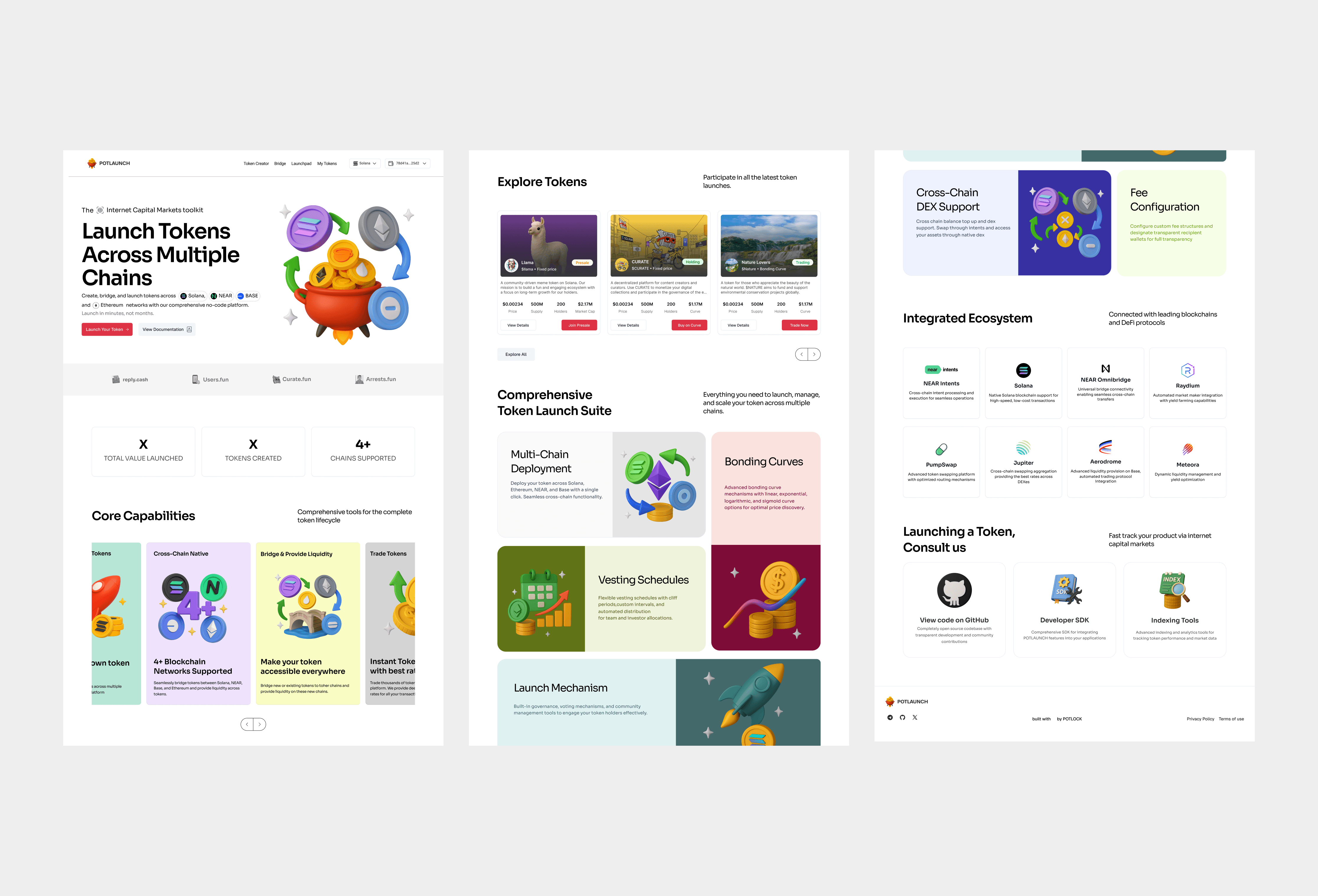 POTLAUNCH bridges design simplicity with blockchain depth. It lets users create tokens, configure sale mechanics (like fixed price or bonding curve), and set liquidity options with clear visual guidance.